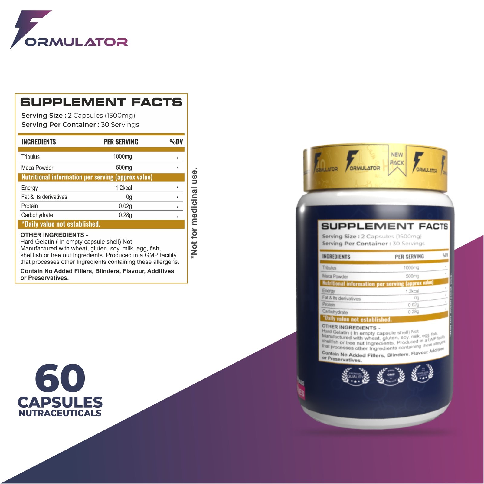- Quality Assurance: The Formulator takes pride in delivering premium supplements. Tribulus + Maca 60 Capsules are manufactured with stringent quality controls, ensuring you receive a safe and effective product.